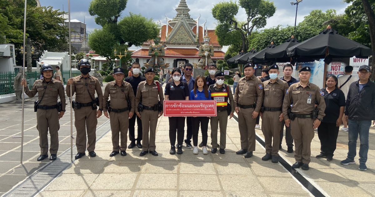 ซ้อมแผนเผชิญเหตุ “คนคลั่ง ณ วัดอรุณฯ” 12 ตุลาคม 2566 โดย admintpd113 / ข่าวกิจกรรม ซ้อมไว้ก่อน อากาศมันร้อนเดี๋ยวคลั่งเยอะ ตำรวจท่องเที่ยวฝั่งธนบุรี ( ส.ทท.3 กก.1 บก.ทท.1) ร่วมกับ สน.บางกอกใหญ่ และ เจ้าหน้าที่วัดอรุณราชวราราม ได้ร่วมกันซักซ้อมแผนเผชิญเหตุ กรณีเหตุพบบุคคลวิกลจริตก่อความวุ่นวาย บริเวณ วัดอรุณราชวราราม FacebookFacebookXTwitterLINELine