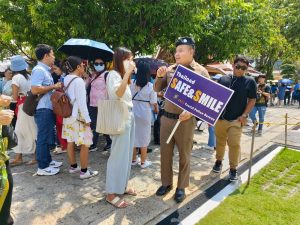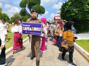 เจ้าหน้าที่สายตรวจตำรวจท่องเที่ยว ส.ทท.3 กก.1 บก.ทท.1 ร่วมกับ เจ้าหน้าที่ตำรวจ ดส. บูรณาการร่วมออกตรวจ และดูแลรักษาความปลอดภัยให้กับนักท่องเที่ยว พร้อมประชาสัมพันธ์ ถึงวิธีการรับมือและป้องกันตนเอง เมื่อเผชิญเหตุการณ์ความรุนแรงในสถานที่ต่างๆ “หนี ซ่อน สู้” หรือ “Run Hide Fight” ตามนโยบาย ผบ.ตร. ณ วัดอรุณราชวราราม