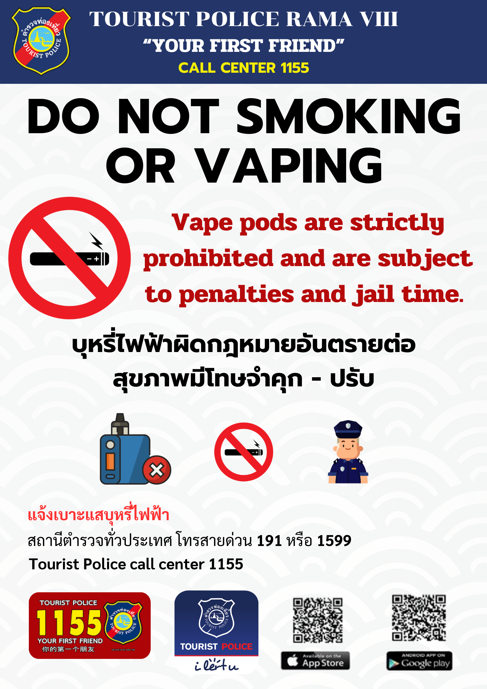ตร.ทท. เตือน ซื้อขาย บุหรี่ไฟฟ้า ผิดกฎหมาย โทษหนัก กรณีผู้ขายหรือผู้ให้บริการบุหรี่ไฟฟ้า มีความผิดตา