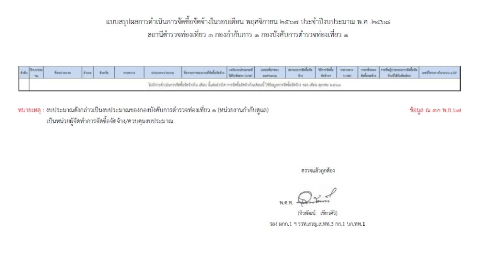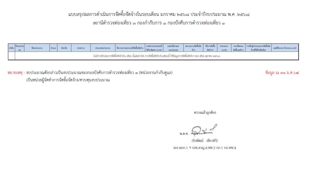 แบบสรุปผลการดำเนินการจัดซื้อจัดจ้างในรอบเดือน ประจำปีงบประมาณ พ.ศ. ๒๕๖๘