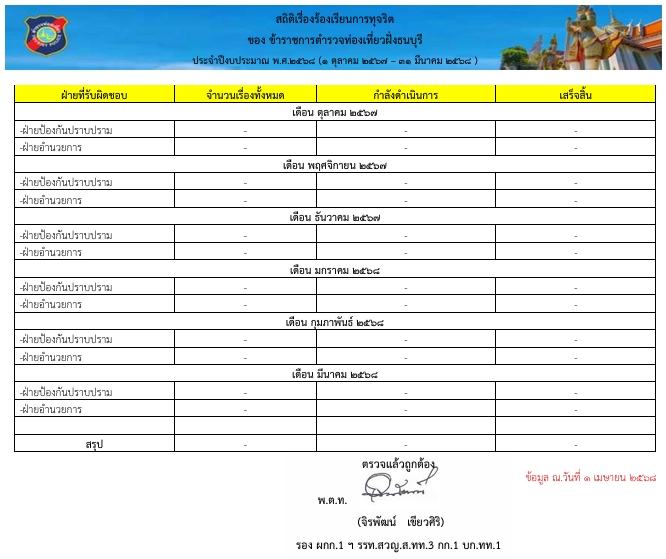 ช่องทางการร้องเรียนการทุจริตและข้อมูลเชิงสถิติเรื่องร้องเรียนการทุจริต
