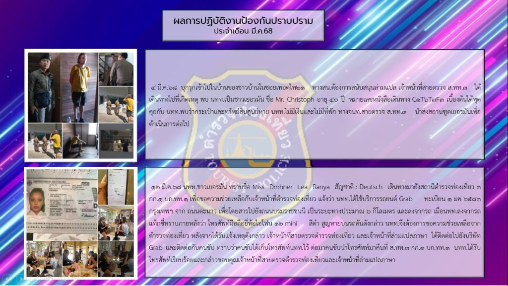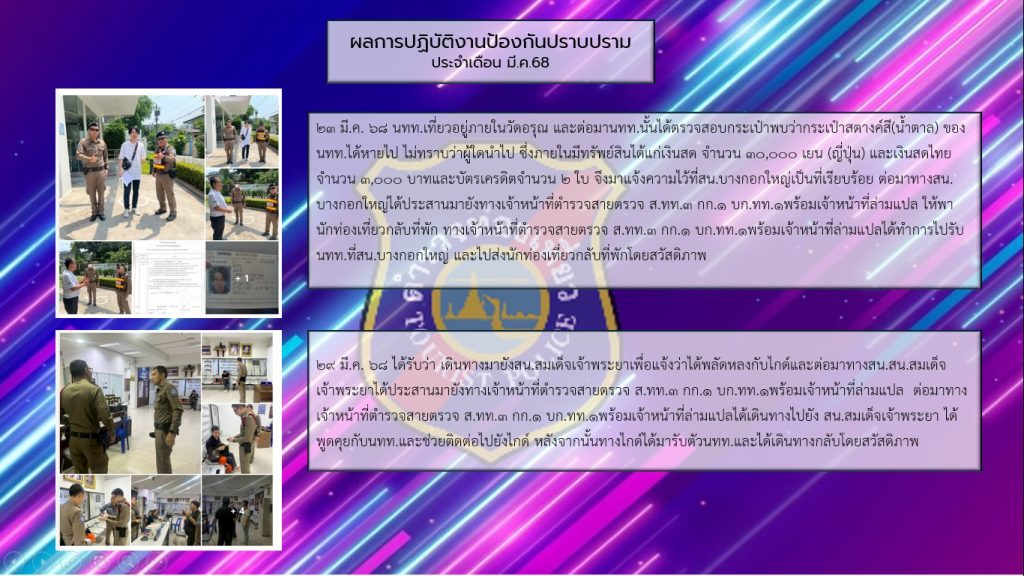 การมีส่วนร่วมของหัวหน้าสถานีตำรวจท่องเที่ยวธนบุรี